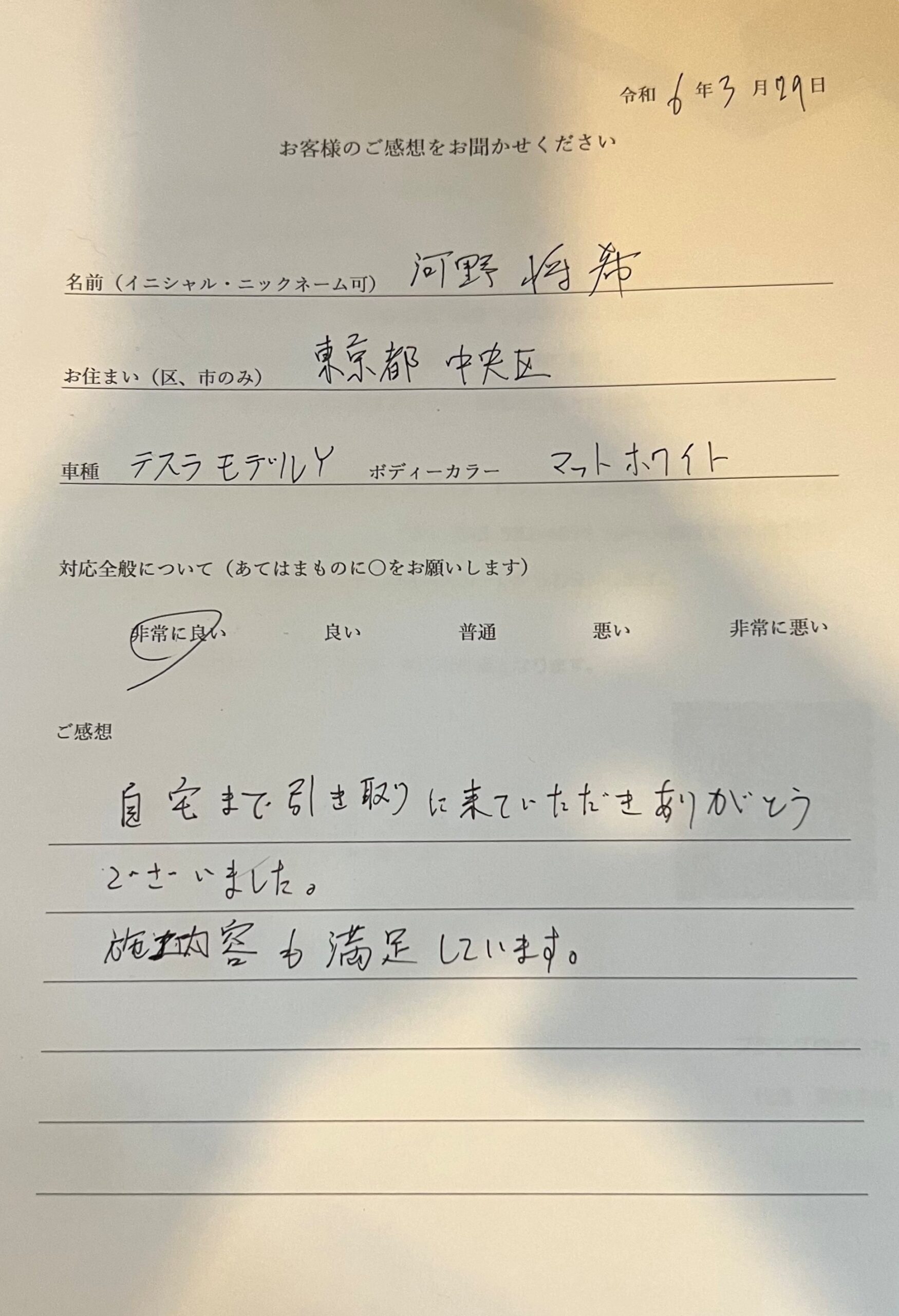 施工内容も満足してます【中央区テスラモデルY】