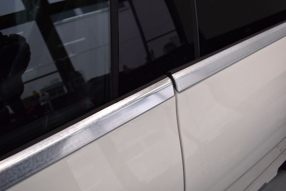 弊店のメッキモールコーティングは、ナノサイズのガラス成分を含んだコーティング剤を使用しております。新車の段階で施工するのがおススメですが、経年車(中古車)でも手作業による研磨でピカピカに仕上げます。